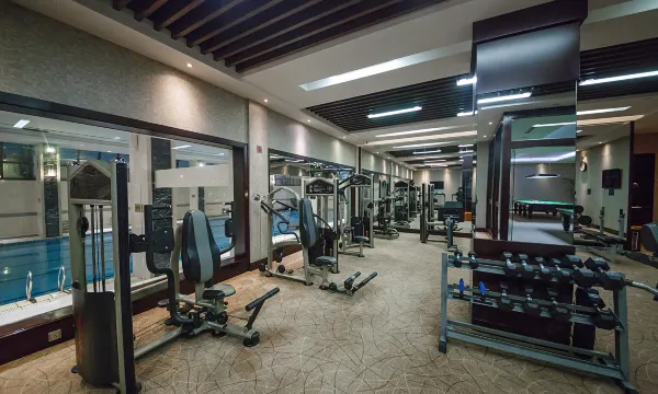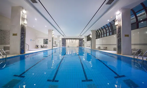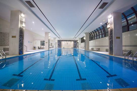 闲暇之余,你还可以带着您的家人到1楼25米长的室内泳池感受视觉冲击。与此同时,室内还有一流的健身设施供您挥洒汗水。大汗淋漓的健身后,在结束漫长的一天之余,您可回到舒适的客房,感受我们精心的准备的设施设备、高速上网等服务,必会让您感受无与伦比的轻松和惬意。