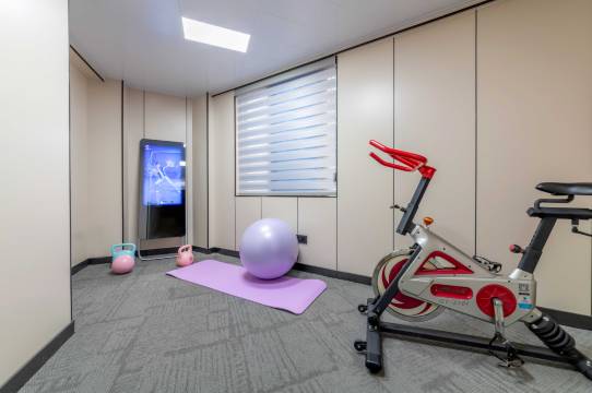 房间配备小冰柜容量够,五六楼都有洗衣房,健身花园一站式体验