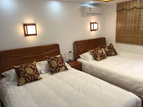 老板很热心也很热情,每个顾客都会接。我本来一个人住,老板还给我了一个很大的双床房。
