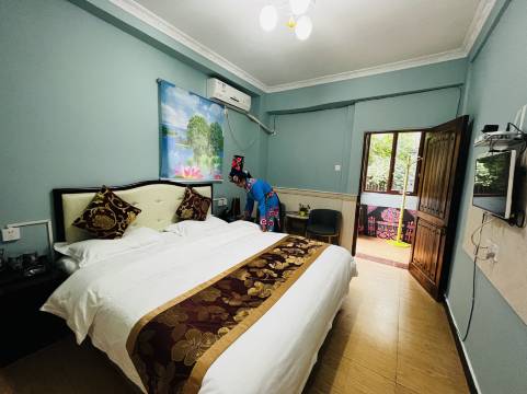 地处羌寨内,楼下吃喝玩乐全都有,房间很大,热水充足,免费停车。老板热情周到,开车到大门口,电话联系后亲自过来带,十分感谢。