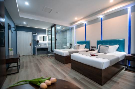酒店以独特、舒适入住体验,高效,创新需求,设施全系列智能模式,自带音响自由切换蓝牙,快速授权,手机可操控房控,房间独立超强WIFI。房间背景为各国家特色景区,仿佛身临其境的的感觉。