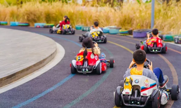 亮点1:户外5000平方米乐园(小动物,小火车,卡丁车,无动力儿童游乐,捞鱼摸虾)。