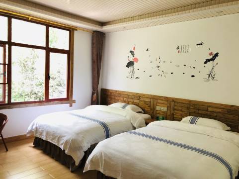 风景很好,有三面落地窗可以看见外面的绿树,老板很热情,宾至如归的感觉,还可以点菜吃,现杀的鸡很好吃,还可以接送去大峡谷,很安静的民宿