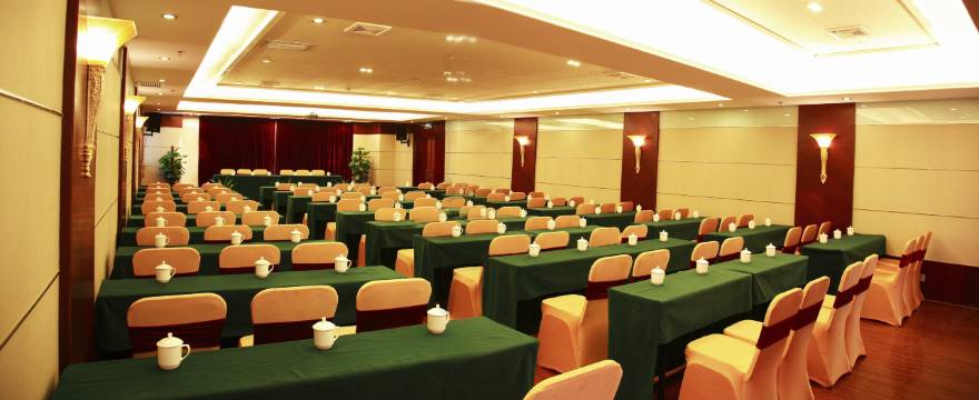 酒店的国宴中餐厅豪华大气,可同时容纳500人就餐,各式包厢布局别具匠心,豪华气派;配备多媒体视听设备的多功能厅及会议室可同时容纳30人至400人,满足各类中、小型宴会、婚庆及商务会议的需要,为您极尽商务便利。