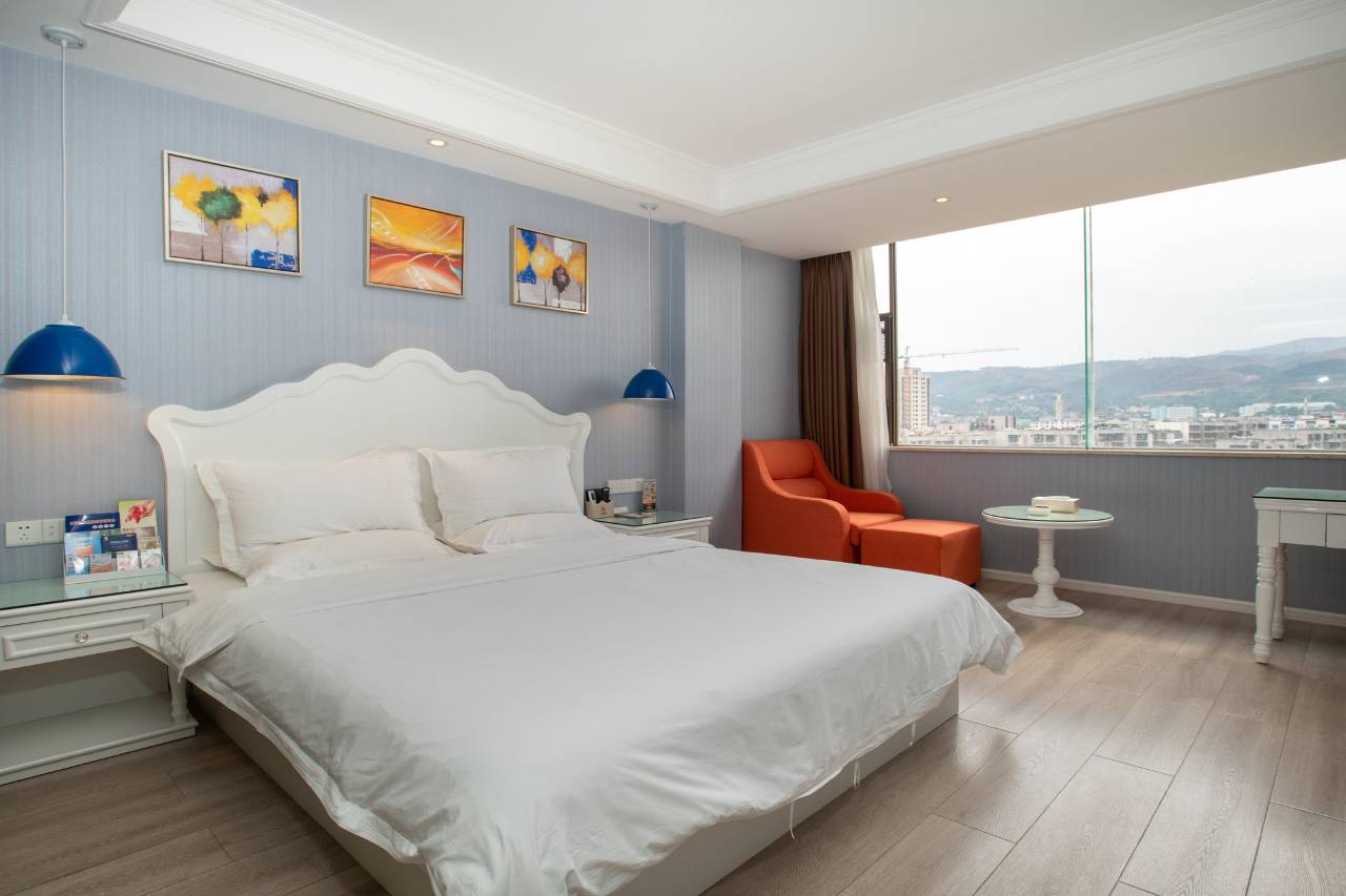 开远旅游最值得推荐的一家酒店,位置非常好,离南正街和开远小火车站都比较近,步行很方便,周围网红老店多,又好吃又好逛。背后滇越铁路文创街区有几个位置可以停车。酒店的宣传文案很硬核,整体装修风格也很时尚年轻,最关键的是价格超级便宜,春节期间才一百多块,性价比极高。
