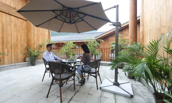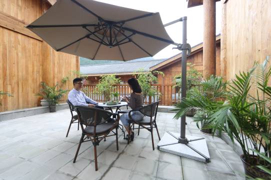 酒店卫生很好,服务到位,整体感觉很划算,128元不光是酒店的费用,还省了门票钱,周围风景很好,凉快,空起很好,很适合早晚跑步。还有一个儿童游乐园,玻璃桥可以爬,也可以泡温泉。还碰到拍戏的剧组,很有意思。周边都是大山,长的很漂亮,离主城也不远。酒店比较复古,有点古代的感觉,有阳台可以看到外面很漂亮的风景。