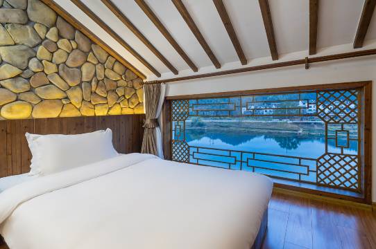 民宿装修很有特色,特别干净,老板娘美丽大方好客,孩子每天在河边玩的不亦乐乎,江景房很美丽。游玩东线非常方便,在江铃,篁岭,李坑等景点的中间,去哪都很近。