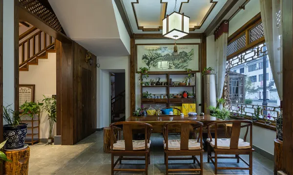 婺源栖溪小筑民宿座落在江湾镇美丽的梨园河畔,故名栖溪,周边自然环境与人文景观融为一体,休闲娱乐和配套基础设施完善,有着非常好的区位优势。婺源栖溪小筑民宿的设计独树一帜,独具风格。庄主别具匠心大量采用了香柏木、老松木料和老杉木料等原生态传统装修材料,共十一个房间和一间书屋娱乐室,每个房间都打造各自不同的特色,把徽派建筑与地中海风格、新中式、古典中式、田园风格进行完美的融合。并且每间主题客房都安装了中央空调和中央热水,条件设施完善。栖溪小筑坐北朝南,冬暖夏凉,景观房有宽敞的落地窗,面朝大河,春暖花开,青山绿水尽收眼里。民宿内配置了品茶、会客、餐厅、厨房等区域,让客人真正感受到江南徽派民居文化特色,不一样的情怀,如同归家的温暖。