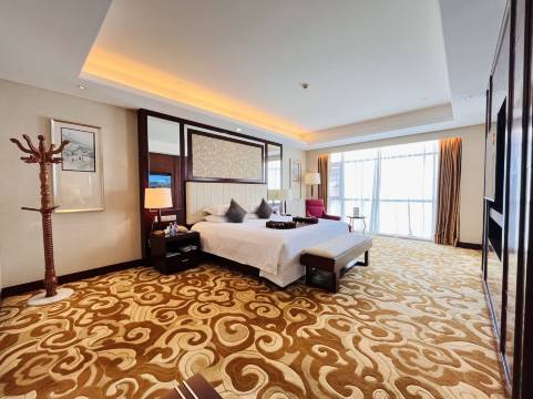 服务从门卫到前台都很热情,房间大,床大,小吧台送水、饮料、泡面和水果,卫生不错,带宠物也不需要收清洁费,新能源充电方便,酒店地下停车场有慢充桩,对面的体育中心有快充。