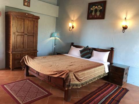 亮橘色的西班牙开放式两层楼建筑,以外露式阶梯、ㄇ型庭院、六角型喷泉、圆拱柱与色彩缤纷的马赛克砖,来到「愿井民宿咖啡」彷若置身南欧小镇。这里是拥有好厨艺的男主人与拥有好才艺的女主人,共同打造的梦想民宿。喜爱旅行的夫妻俩,走遍土耳其、希腊、西班牙、摩洛哥、印度等30几个国家,他们将旅行的回忆,重现在每个房间内,因此每间客房都别具特色。沉浸在愿井充满异国情调的渡假氛围里,从北非花园、爱琴海、邂姤边城这些房名,不难想象客房以世界各国的特色来布置,搭配由国外带回来的织布、陶壶、牛皮台灯、抱枕、床饰、灯具等摆饰,鲜明的色彩,带来阳光般的好心情,旅人们就算不出国,也能在愿井体验各国风情。