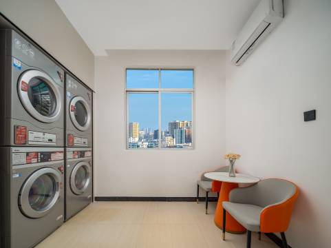 环境还可以,进来有保安带停车,前台小姐态度热情有礼貌,给我安排的房间也是比较安静的,虽然临街,但隔音效果也挺好的,十楼还有一个小的健身房,非常不错,洗衣机烘干也简单好用,烘干的衣服可以立马穿了,味道还香香的,价格还这么便宜,性价比超高的了,推荐推荐
