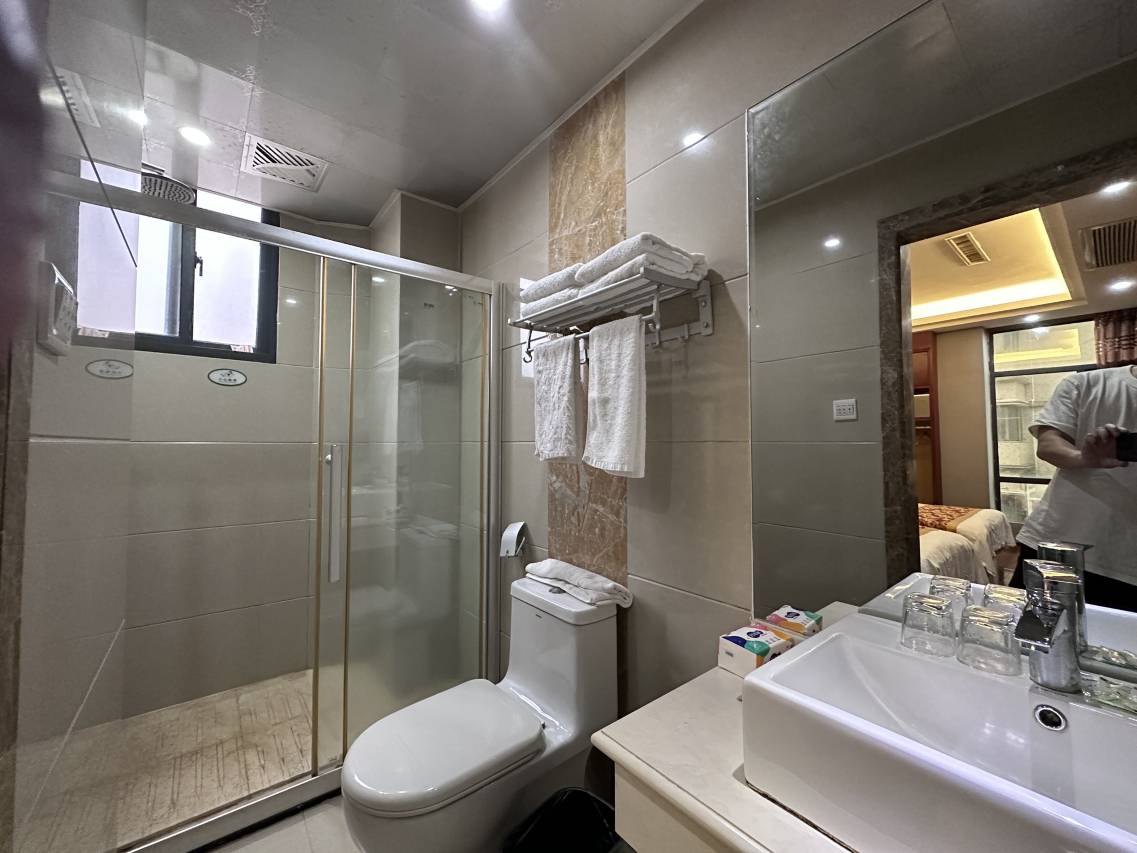 房间大小适中,设施齐全,就是冲澡时发现卫生间被一堆头发堵住下水口了,早餐比较简单总之来说性价比还不错。