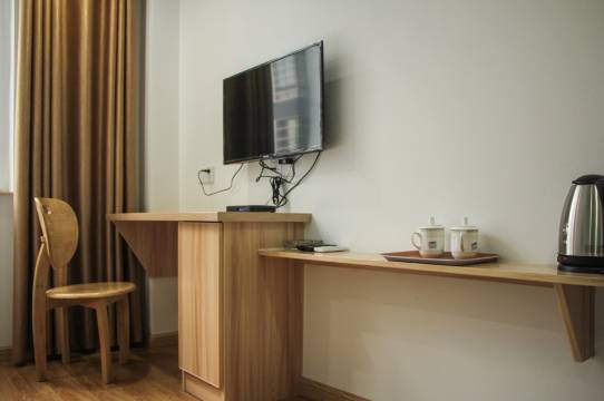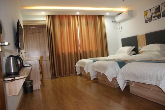 家庭式宾馆,就在高铁站正对面,交通方便,门口有足量公共免费停车位,我们自驾过去,停车方便,设施稍旧,但都好使用,热水和空调都很给力,矿泉水和纸拖鞋也都有,出宾馆有往右走再右转的那条街上,有很多饭馆,吃东西很方便,这家宾馆性价比蛮高的,老板非常热情,推荐。