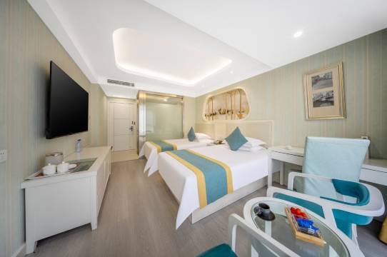 在国际商贸城进货非常方便,步行到各个区非常方便,服务员非常不错哦,早餐丰盛,超预期,继续续住了几天时间,闭眼下单吧!