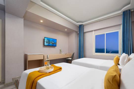 酒店闹中取静,步入其中,犹如回到温馨巡逸的家园,简约的装修风格为旅途劳累的您带来一丝宁静,24小时数字监控系统为你的安全保驾护航。房间装修温馨别致,包房内有线电视、电脑、空调、24小时热水等设施一应俱全,宽带接通每个房间,方便商旅办理事务,更有温馨浪漫的法式圆床、经典韩式房和特色日式房等不同风格的房间供您选择,酒店内还有棋牌室为您提供娱乐休闲,是宾客旅游、休闲,亲朋好友聚会的理想去处!