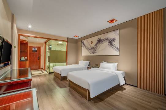 酒店环境不错,前台小姐姐服务很热情,房间宽敞,干净卫生,附近美食很多,还有免费停车场,性价比可以哦,值得入住!