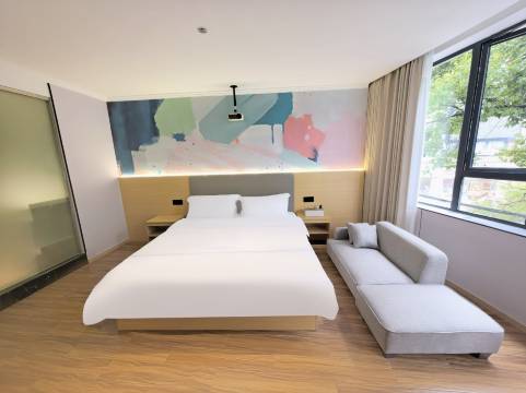 房间真的很大,灯光氛围很好,一出门就有风景,吃喝都很方便,房间干净整洁,温馨舒适,洗漱用品一应俱全,都是一次性的,很方便,前台服务很好,值得推荐。