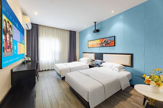 房间里的窗户是双层玻璃,隔音和保温效果都很好,冬天保暖夏天隔热,住起来特别舒服。周边的景点都很近,打车十几分钟就能到,而且酒店门口就有直达景点的公交,对于不想自驾的游客来说特别方便。