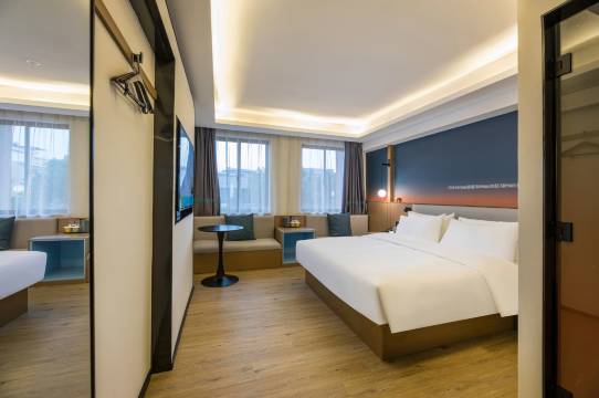 酒店配备绿色装饰材料,风格简约清晰,富有现代大都市的氛围。它提供舒适,柔软的大床,干净的浴室,快速的wifi和安静的环境。自助早餐停车,是商务、旅游、探亲访友的理想选择。