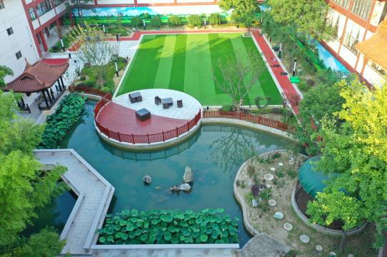 酒店总建筑面积近25500平方米,建筑造型体现中国古典园林风格,亭台楼阁,苍松翠柏、绿树红花相映成趣,让宾客在喧嚣的城市里感受一份世外桃源的宁静。
