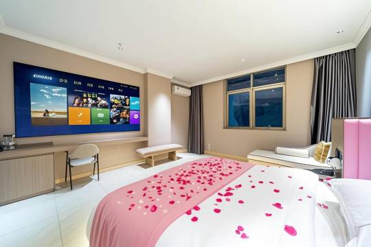 来这边旅游出差,然后定了这家酒店,他们有洗衣房,我就比较方便,他们还上了一个年初的优惠活动,感觉就是性价比也挺高,卫生服务各方面做得很好,所以我说我在这边连续做了很几天,我订的也是他们一个特色的房型投影大床房里面的电影都是可以免费看的,而且投影仪也比较清晰,露出体验感挺好的