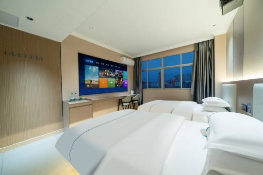 这边是2024年新开业的,好像也是全智能化的一家酒店。在这边定了他们的那个头那个麻将房我们几个朋友一起来打麻将,感觉体验感还不错,然后也有双床房晚上睡觉的话也比较舒服,舒适隔音效果也挺好的,听说他们还是2021年新开业的整体体验感都是特别好的,然后我觉得吧,这家店还是值得推荐的。