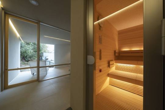 3.在半露天的汤池里泡温泉,还可以蒸桑拿。