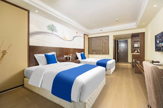 酒店装修均采用环保材料,耐用舒适,绿色环保。客房里有舒适的床上用品、先进的触摸门铃等。