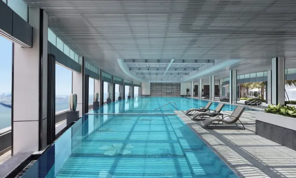 酒店坐落于深圳宝安中心区,坐拥前海湾美景,紧邻欢乐港湾、湾区之光摩天轮、湾区之声演艺中心等大型公共设施。酒店交通便利,距离深圳宝安机场及深圳湾口岸约20分钟车程。 酒店二期光之翼位于欢乐港湾3号,临近地铁临海站,与湾区之光摩天轮隔窗相望,入住宾客均可享受行政酒廊礼遇。另设港湾尚膳餐厅、光之翼壹号多功能厅和健身房。