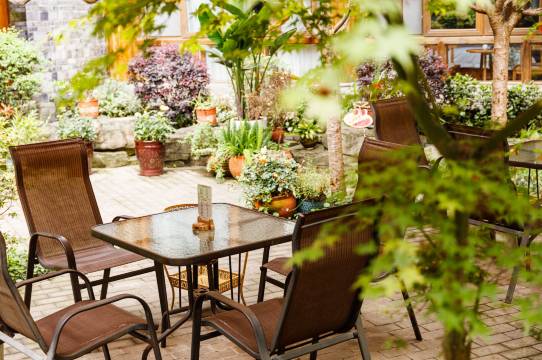 龙泉山脉逶迤向南,出成都,入仁寿境;天府大道剑指南方,四十余公里即与龙泉山不期而遇;两者交会之所在,是黑龙滩的起点,驾鹤西去的杨公当年选择这个地方兴建黑龙滩,冥冥中似有天意。会展集团秉承先贤慧眼选择这里打造长岛国际旅游度假社区,别具一格的无边游泳池,亲近自然的各类球场,山水之间的烧烤露营场地,古朴的鲜花小镇,四季的鲜花,宽阔的草坪,清澈的黑龙滩水,宁静的码头,落日余晖,真真是一个休闲的天堂,也是一个可以放下烦扰喧嚣而肆意发呆的好去处。眉山黑龙滩长岛别院酒店是鲜花小镇中的一处独特的院落,川西民居建筑风格,整体合围成院,有几分地主老财老宅子的味道。几个小伙伴对她一见钟情,倾心而为,一家精致小巧的民宿酒店就呈现出来了。建筑层高超乎想象,所以有了在房间里做小阁楼的空间,一部分子母套房就有了,一家三口住进来,再也不用担心跟小朋友打挤了。一多半的房间都有露台,花草已为你种上,躺在舒适的床上,身边就是鸟语花香。