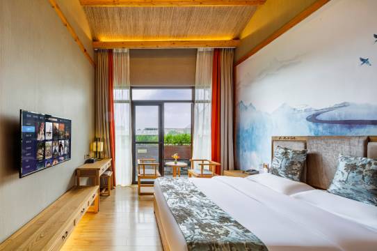 与同学相约前往黑龙滩小聚放松,现场看了选的这家酒店。住宿环境不错,装饰典雅,干净安静,空调效果好。游黑龙滩美景,同学把酒言欢,甚为惬意。酒店内也有麻将室,是我等川人必安排上的娱乐活动。一套活动下来,入房休息,天公作美,晚上下起雨来,在房内享受着清凉,静听风声、雨声、虫鸣,渐入梦乡,着实体验生活之美。着他家小厨房做的鱼也不错,兄弟几人点了酸菜味花鲢,家常味翘壳,麻辣味黄辣丁,肉质滑嫩鲜香,都挺入味。本地野生斗鸡菇烧的汤着实鲜美。特别推荐店家自己卤的牛腱子肉,正宗!吃住都是一次不错的体验!下次找机会再来。