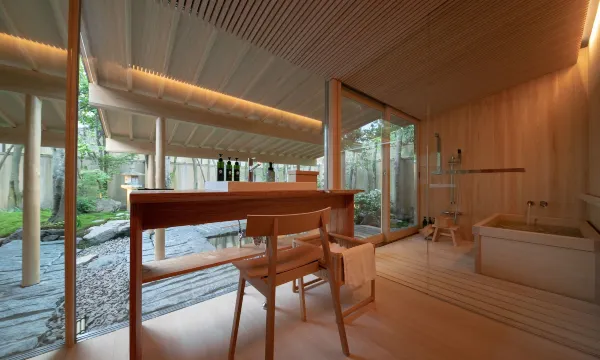 园林环境很漂亮,各房间围绕一个园林,感觉好像不超过10间房。入住的那个房间内有私汤,有围墙,外面看不见里面,私汤泡温泉很舒服。入住当天在酒店里面的餐厅用餐时,吃饭的应该都是住客,但应该都是日本人。在携程订虽然很贵,2个人一晚价格是近6300人民币,但入住体验还是开心。没有觉得前台有人讲华语,但不影响沟通交流。如果有更多素食选择更好啦。阿弥陀佛。