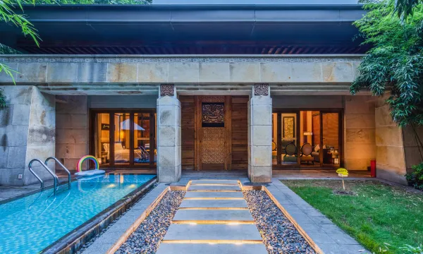 别院由汇景阁大别院、四栋小别院、八栋联排汤屋和一座私人会所构成。别院风格为极简主义,还原天然材质本身的魅力,营造出平和的气场和独具匠心的生活空间。
