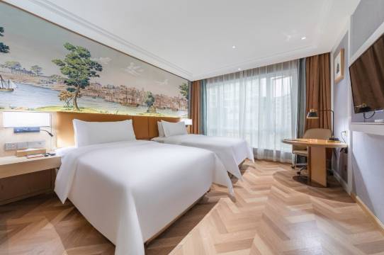 酒店在市区,交通便利,且酒店环境舒适宜人,出酒店就有很多好吃的,主要前台小姐姐服务特别好,还给我安排了安静一点的房间,也赠送了早餐,退房的时候还送了小零食