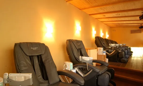 设施比较怀旧。员工服务很好。我晚了40分钟check in,还是好热情地招待我并上菜。服务时看我不会日文,细心用translate翻译成了英文。温泉非常舒服,客人很少地方很够,非常写意。里面挺多有意思的小活动,但我最想用的都休止了或没提供,包括岩盘浴和咖啡机。小后花院有点意思但太小了。不过樱花开始开了,很开心。
