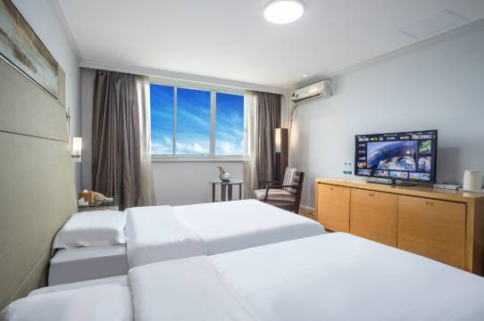 前台服务人员服务周到,必须点赞,到店后更换了双人床,前台立马办理。酒店环境不错,房间里也蛮大的,干净卫生,挺豪华,这个价位性价比很高。晚上开车去市中心也不远,挺满意的。