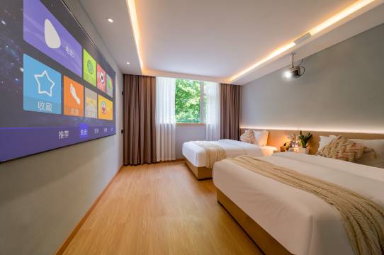 房间布置的很清爽,是我喜欢的风格,房间采光很好,还有投影仪,手机看大剧非常不错,周边出行也很方便,有机会还会选择这里。