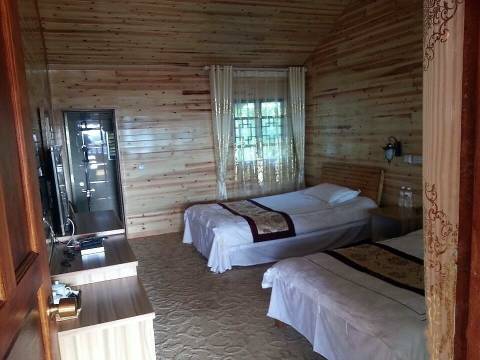 客栈总体比较原生态,不算豪华,但是基础设施都比较到位,这个价钱还是很值的,尤其还是黄金周。老板娘很漂亮,老板很帅,请我们喝茶喝酒,非常热情,很耿直。公共茶室不错。不过要看日落日出云海,客栈是看不到的。客栈整体造型还是非常有特色的,整体小木屋围着。有点古色古香的古寨风格。