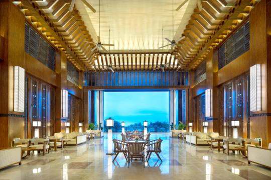 酒店建筑以“古为今用、洋为中用”为设计理念,将“琴棋书画、金戈铁马、歌舞升平、四海归心”等中华传统文化元素良好的融入酒店整体建筑和装饰风格中,用现代时尚元素阐述历史,设计浑厚有力,把典雅和精致完美结合,充分体现皇家之高贵和中华民族的自信与自强,处处传递“阳刚、稳重、大气、祥和”文化底蕴及正能量。它有着古老而又赋有诗意的名字——“海上的中国院子”,为你的到来述说具有文化气息的故事和呈现现代完美作品。
