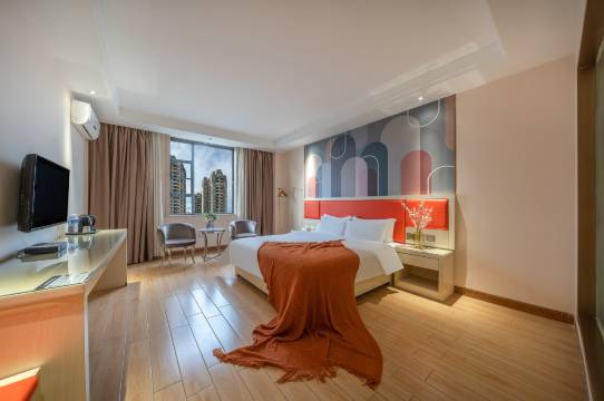 房间干净卫生,前台服务态度很好,酒店设施设备齐全,还有免费停车场,出行挺方便的,后面有一条小吃街,靠近地铁。