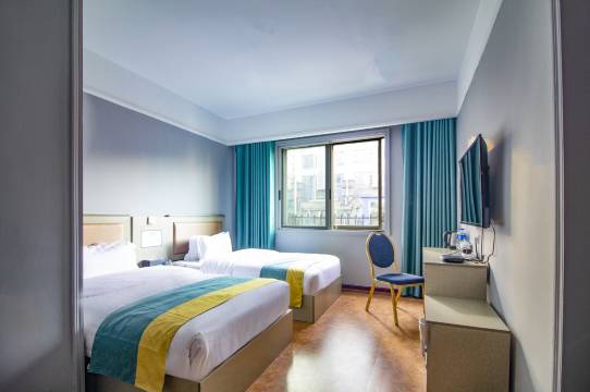 房间卫生很干净,采光也很好。双床房的床是1米5的,房间也配的有办公桌用,价钱也实惠