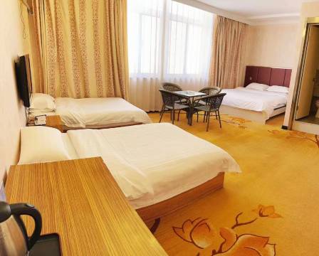 房间大小刚好,很温馨,很干净,服务员服务特别好,前台小姐姐很漂亮,周边条件非常便利,吃喝玩乐的地方也都有,大厅很亮堂,很大气,以后来达旗就住这家