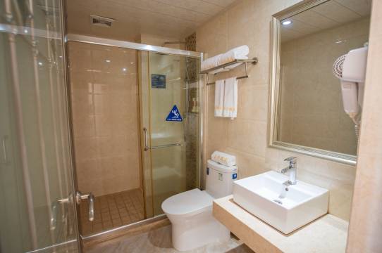 位置优越,就在台山商业城对面,近公交车站,出行方便,周边商业氛围好,离台城步行街咫尺之遥,餐饮店和超市众多,吃饭和购物非常方便,酒店设施齐全,有电梯,环境卫生好,没有异味,床罩被单枕头浴巾毛巾较新且干净,服务到位,性价比可以。