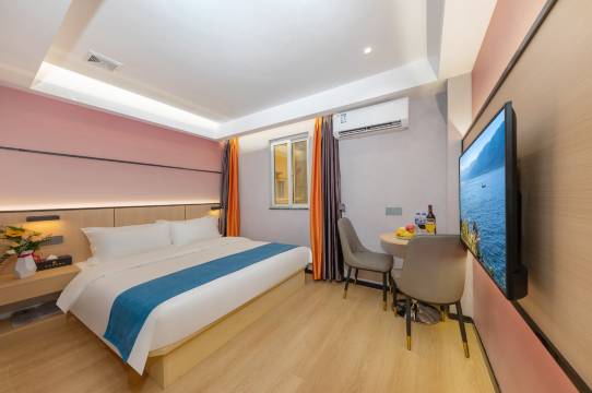 酒店位于南沙金洲今洲广场对面,临近进港大道,是您出差、休闲、娱乐的住宿好选择。酒店临近地铁四号线金洲站,公车站金洲站步行约1分钟,给您到店出行都带来方便。酒店地处金洲商业街内,临近今洲广场、金莎广场。附近相关娱乐、饮食、购物等设施齐全,楼下有大型连锁好又多超市、KTV等,建设银行、交通银行、中信银行、广州农商银行等步行即到。可游览南沙天后宫,同时可去海滨公园看看大海、游玩沙滩,车程约10分钟;亦可去百万葵园看四季繁花似锦,以及到广州最南端的十九涌坐游艇、品尝味美价廉的海鲜,车程约40分钟,出游十分便捷。 酒店客房规整,房间超大,采光充足,拥有高层观景房。酒店拥有停车位;Q+服务为您提供舒适的住宿环境和便捷服务,是您出行住宿的优选之地。