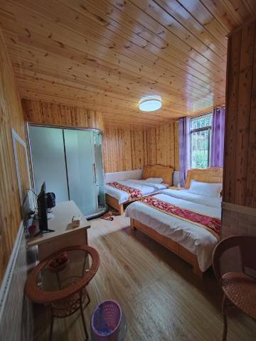 山庄毗邻观景台,空气清新,风景优美,有自家停车场,房间通风采光、舒适优雅、设备齐全,每个房间内都配有彩电、空调、独卫,是入住的理想选择。