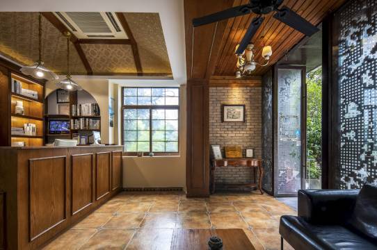 1917年由德国人派司建造的三层石造名别墅,一座名副其实的百年老别墅。位于莫干山风景区核心景区荫山街南端,剑池下榻处近在咫尺。2015年山庄经过重新装修,面貌焕然一新,卫生设施一流。