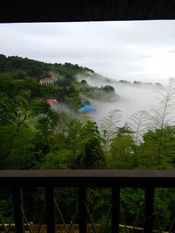 酒店在半山腰,阳台风景很好,前台很热情! 早晚游客少,非常安静,山里空气清新,非常推荐! 哦,早餐也不错。