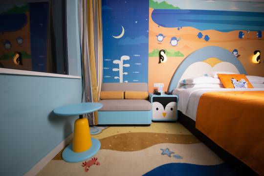 办理入住时,前台工作人员态度热情又专业,效率超高。房间干净整洁,空气清新床品柔软舒适,工作人员服务周到、免费Wi-fi,网速快,周边景点也挺多,游玩方便。周边配套完善,酒店旁边就是高铁站,真的是交通非常便利,让我们出行无忧。房间布置满是企鹅元素,温馨又童趣,儿童拖鞋、儿童牙刷都准备好了,很贴心。管家服务态度好够专业,管家提供了很多便捷的服务,每天会发送园区表演时间。工作人员服务态度好,咨询各种问题回应很快,客房服务及时。孩子最喜欢的是酒店里的儿童设施,有童趣廊,淘淘乐堡,房间宽敞舒适,设施齐全,还有小冰箱和保险箱,非常贴心。酒店自助餐可以看到企鹅,一边吃饭一边观赏企鹅,非常不错的体验,餐饮丰富,早餐选择多样,味道超赞,环境优美,中式西式都有。。地理位置堪称完美,与海洋王国紧密相连,步行1分钟就能到达园区入口,游玩结束后能快速回酒店休息,节省了大量时间和精力。此次在企鹅酒店的入住体验非常开心,下次有机会,还会选择这里!