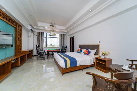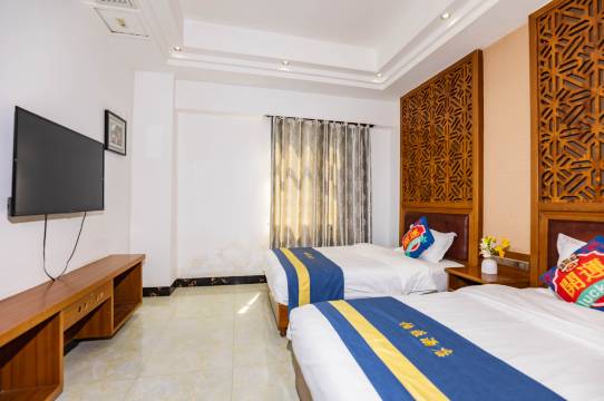 三个人过来住的三张床的大套间,客房的面积很大,非常宽敞舒适,价格也非常亲民,老板人很好!下次还会来!