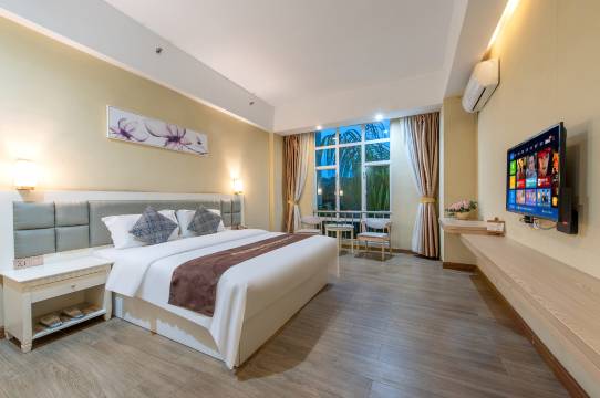 本店位于番禺区南村镇文明路南村汽车总站旁,与南村镇繁华商业街仅2分钟步行,与广州大学城近10分钟车程,就在身边的中国清代广东四大名园之一余荫山房等著名旅游景点仅需5分钟车程,紧靠万博中心----吉盛伟邦、时尚的天河城折扣店、中外美食的四海一家以及沃尔玛山姆会员店,距离长隆欢乐世界、水上乐园仅需15分钟车程,离中国出口商品交易会琶洲展馆仅10公里,有超过8条穿越于番禺以及广州城区的公交线、地铁线接驳巴士,地理位置优越、交通便利。本酒店拥有豪华、蒸汽套房等房间,客房配置:液晶电视机、空调、宽带上网接口、独立卫生间、24小时中央热水淋浴、梳妆镜,生活用品、全套高档一次性洗漱用品等,配置高档,环境优雅,是您放松心情,娱乐、购物、旅游与商务洽谈于一体的理想地方!